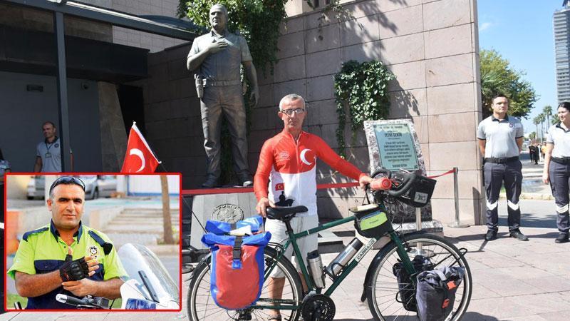 İzmir'de yaşayan Orhan Kotluk (45), şehit polis memuru Fethi Sekin'in anısına 1570 kilometrelik bisiklet turuna çıktı. Kotluk, "Fethi Sekin ve tüm şehitlerimizi saygı ve rahmetle anıyorum. Lütfen unutmayın, onları unutturmayın" dedi.