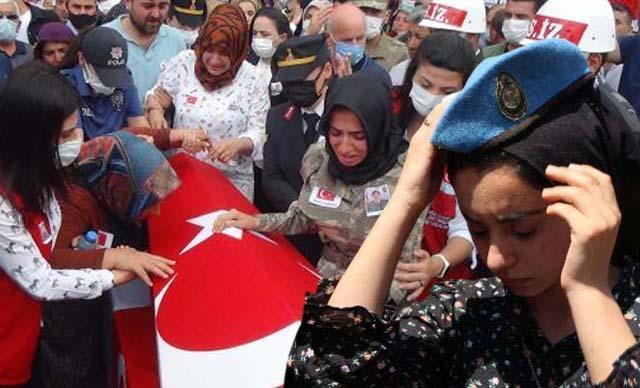 Şehit uzman çavuşu ablası üniforması, nişanlısı beresiyle son yolculuğuna uğurladı