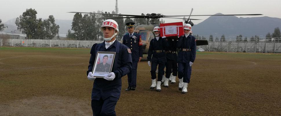 Hatay Devlet Hastanesi acil servisinden, önünde Türk bayrakları asılı ambulanslara alınan şehitlerin cenazeleri konvoy eşliğinde Hatay Havaalanı'na gönderildi. Havaalanında basına kapalı gerçekleştirilen törenin ardından şehitlerin cenazeleri askeri uçaklarla memleketlerine gönderildi. Hatay Devlet Hastanesi’nde, düşen ATAK helikopterlerinin şehit pilotları Yüzbaşı Mehmet İlker Karaman, Üsteğmen Erdem Mut ile PKK/YPG'li teröristlerle çıkan çatışmada şehit olan Astsubay Üstçavuş Hasan Kuş, Uzman Çavuşlar Halis Koca, Koray Karaca, Serdar Ege, Hüseyin Şahin ve Hamza Karacaoğlu’nun cenazeleri bulunuyordu.