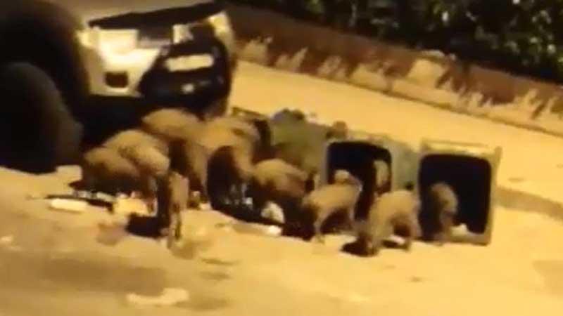 Gerzele Mahallesi yakınındaki ormandan gece saatlerinde sürü halinde şehir merkezine kadar inen domuzlar, evlerin önündeki plastik çöp kovalarını devirdi. Yiyecek arayan yaban domuzları, cep telefonu kamerasıyla görüntülendi.