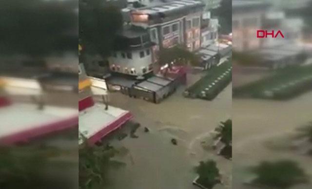 Balıkesir'in Bandırma ilçesinde etkili olan sağanak, cadde ve sokakları göle çevirdi.
