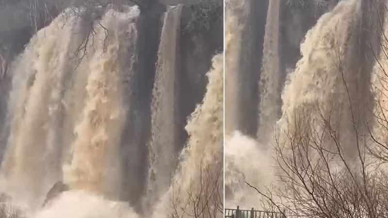 Sel suları nedeniyle Sızır Şelalesi, çamur renginde akmaya başladı