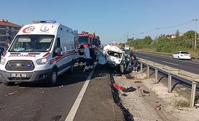 İhbar üzerine kaza yerine sağlık itfaiye ve polis ekipleri sevk edildi. Gelen sağlık ekibinin yaptığı kontrolde hurdaya dönen otomobilin sürücüsü Nursel Yeşildağ ile yanındaki Muhsin Yeşildağ'ın (65) yaşamını yitirdiği belirlendi. Yaralanan 4 kişiden minibüs şoförü Bülent Dikerler ile işçiler Arif Sağlam, (36) ve Hüseyin İlker, (34) Çorlu Devlet Hastanesi'ne, durumu ağır olan Nurettin Ünal (37) ise Tekirdağ Namık Kemal Üniversitesi Tıp Fakültesi Hastanesi'ne kaldırıldı.