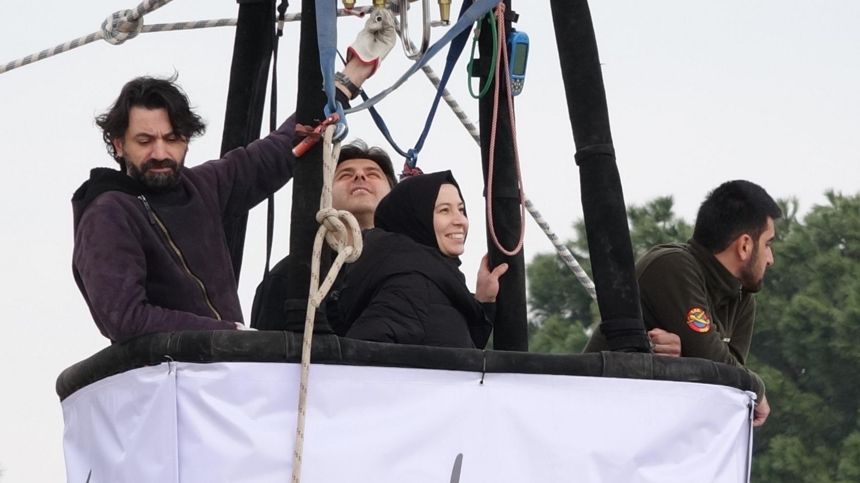 Bursa'da, Sur Yapı Marka AVM, 8 Mart Kadınlar Günü dolayısıyla yaptığı çekilişi kazanan 20 çifti, sıcak hava balonuyla gökyüzüne çıkardı.