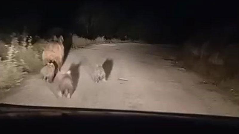 Yerliçoban köyü yolunda dün akşam saatlerinde aracıyla ilerleyen Mahmut Acar, köy yoluna inen ayı ve 3 yavrusunu cep telefonu kamerasıyla görüntülendi. Yolda ilerleyen ayılar, bir süre sonra bölgede gözden kayboldu.