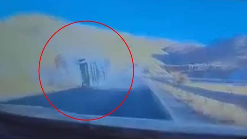Siirt'te virajı alamayan şoförün kullandığı TIR, devrildi. Kaza, karşı yönden gelen aracın kamerasına yansıdı.