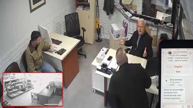 Burada iki kişi Naim G.’nin odasına gelerek, oğlunun Mahmut E. ile ticaret yaptığını ve kendisinden alacağı olduğunu iddia etti. Naim G. ise oğluyla yaklaşık 10 yıldır görüşmediğini söyleyerek oğlunun borcunun kendisini ilgilendirmediğini ifade etti. Bu cevap sonrasında sinirlenen 2 kişiyle Naim G. arasında tartışma çıktı. Tartışmada şüpheli 2 kişi Naim G.’yi 'Bu işi başka şekilde halledeceğiz' diyerek tehdit ettikten sonra iş yerinden ayrıldı. Yaşananlar güvenlik kamerasına saniye saniye yansıdı.