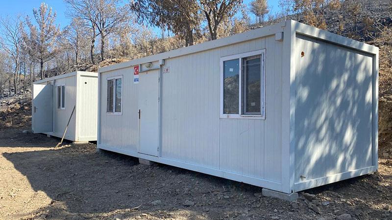 Mersin’in Silifke ilçesindeki orman yangınında evleri zarar gören vatandaşlar için konteyner evler kuruluyor.