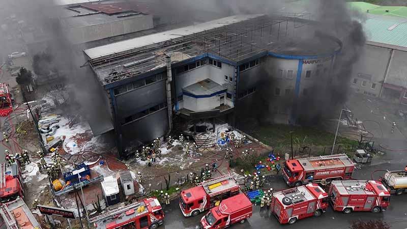 Silivri’de kauçuk fabrikasında çıkan yangın söndürüldü