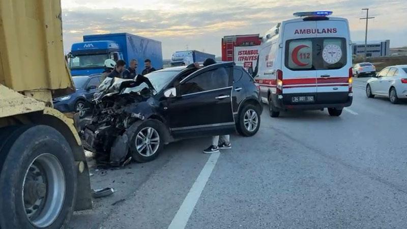 Silivri’de otomobil hafriyat kamyonuna çarptı: 2 yaralı