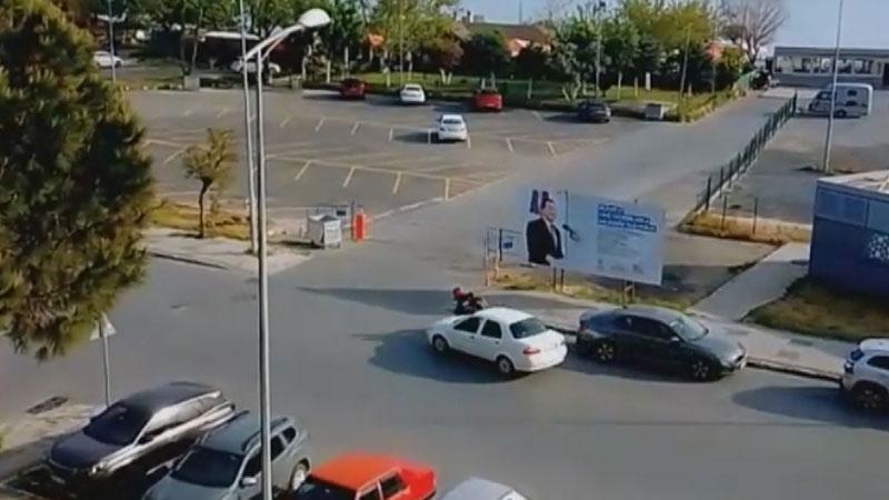 Kaza saat 18.00 sıralarında Piri Mehmet Paşa Mahallesi İnönü Caddesi'nde meydana geldi. Yol kenarındaki otoparka girmek için manevra yapan otomobil, sağ tarafından geçen motosiklete çarptı. Motosiklette yolcu olan kişinin kask takmadığı görülürken, kazanın etkisiyle yola savrulan 2 kişinin yaralanmadığı anlaşıldı. Kaza anı cep telefonu ile görüntülendi.