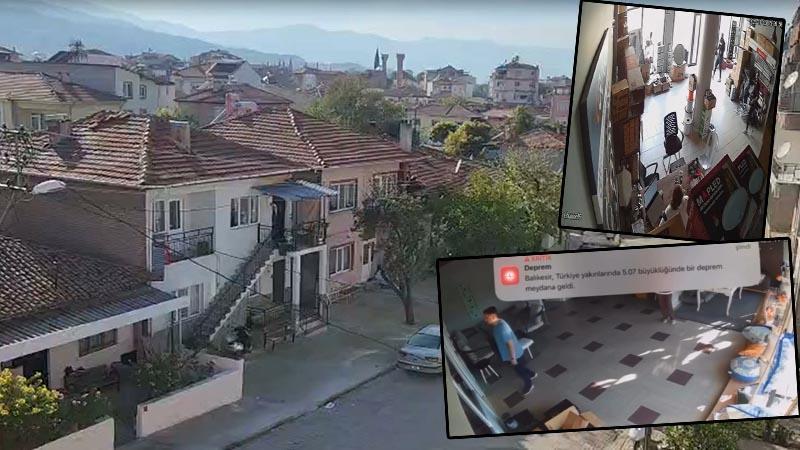 Balıkesir'in Sındırgı ilçesinde meydana gelen ve Bursa'da hissedilen 4.9 büyüklüğündeki deprem, Orhaneli ilçesindeki bir kafenin güvenlik kamerasına yansıdı.