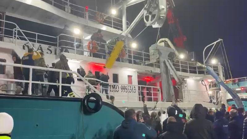 Sinop açıklarında, Panama bayraklı BEATA isimli kuru yük gemisinde çıkan yangında, ekiplerin yaralanan ve dumandan etkilenen 16 mürettebatı kurtarma anlarına ait görüntüler ortaya çıktı.