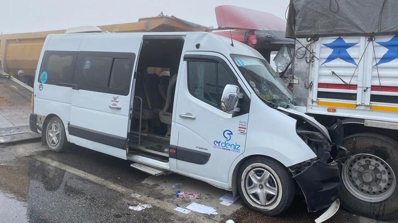 Kaza, saat 09.30 sıralarında Konya- Adana kara yolu Kuzu kavşağında meydana geldi. Yoğun sis nedeniyle görüş mesafesinin düştüğü yolda Ali İhsan Özdemir yönetimindeki 42 GAD 17 plakalı öğrenci servis minibüsü, Ahmet Elitaş yönetimindeki 20 ALH 23 plakalı TIR'a çarptı. Vahdettin Bekdik yönetimindeki 42 GR 214 plakalı hafriyat kamyonu da kazaya karıştı.