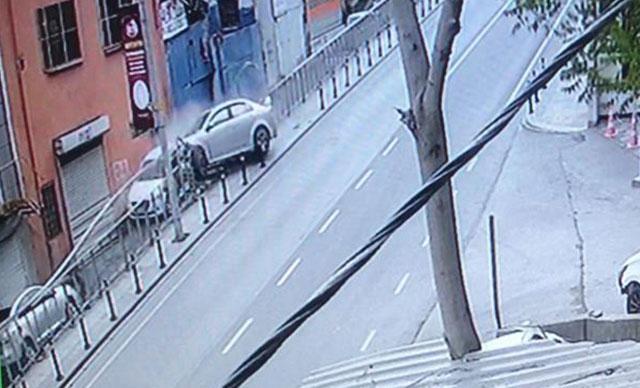 Şişli'de bariyerleri parçalayan otomobil tamirci dükkanının önüne böyle düştü