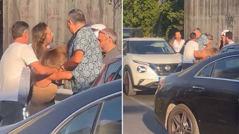 Saç saça baş başa birbirine giren kadınların kavga ettiğini gören diğer sürücüler araya girdi. Erkek sürücülerden biri kadınları ayırdı ardından da iki tarafı sakinleştirmeye çalıştı. Kadınlardan biri diğerine küfür ederken, diğer kadın ise kavganın ardından aracına binerek olay yerinden ayrıldı. Yaşananlar cep telefonu kamerasına yansıdı.