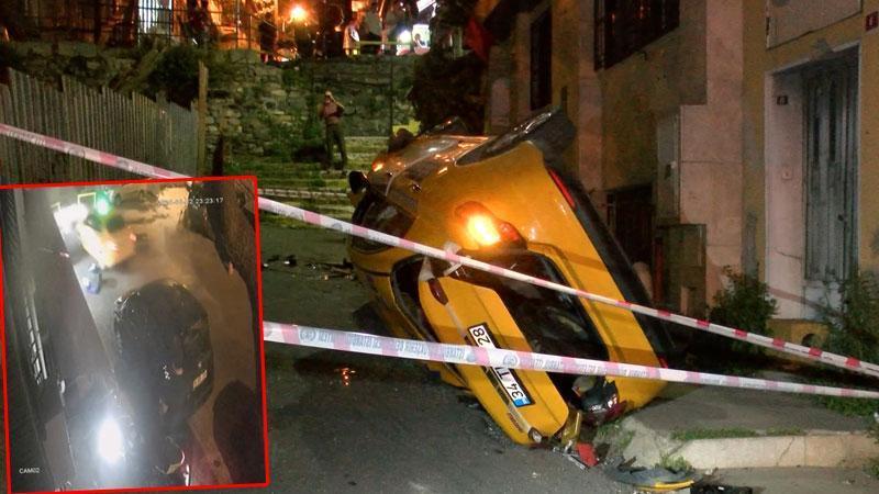 Şişli'de taksi, 10 metreden çıkmaz sokağa uçtu; o anlar kamerada