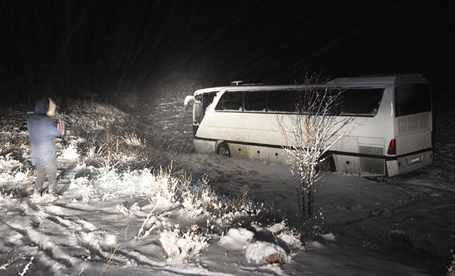 Sivasspor altyapı oyuncularını taşıyan otobüsün kar nedeni ile şarampole inmesi sonucu 7 kişi yaralandı.