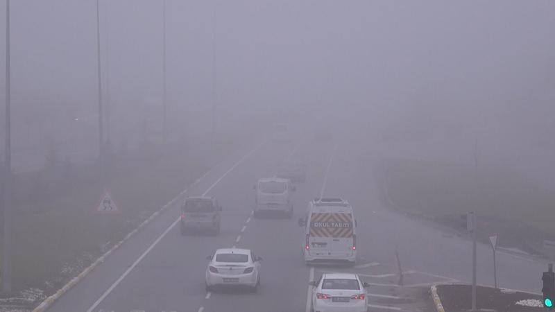 Sivas'ta yoğun sis nedeniyle görüş mesafesi 20 metreye kadar düşerken, sürücülerin de araçlarıyla trafikte ilerlemekte güçlük çektiği görüldü.