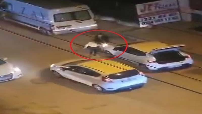 3 vatandaşın tutup engellemeye çalıştığı şüpheli, arbede sırasında yere düşen kadını bu kez saçından tutup sürükledi. Güçlükle kurtulan kadın, ağlayarak otomobiline binip uzaklaşırken, şüpheli de kaldırımda park halinde olan otomobiline binip, kadının aracını takip etti. O anlar, cep telefonu kamerasıyla kaydedildi.