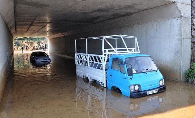 Olay, saat 10.30 sıralarında Gazipaşa'ya bağlı Ekmel Mahallesi'ndeki D-400 karayolunda meydana geldi. Ekmel Mahallesi'nde babasının evinden şehir merkezine gitmek için 07 AIE 004 plakalı otomobiliyle yola çıkan Nermin Yalçın, su dolu alt geçitten geçmek istedi. Geçidin ortasına geldiğinde otomobil yaklaşık 70 santimlik suda mahsur kaldı. Nermin Yalçın, kendi imkanlarıyla kurtulamayınca, cep telefonuyla eşi ve babasından yardım istedi. Bunun üzerine Ali Yalçın 07 UN 004 plakalı kamyonetle eşinin yardımına geldi. Kamyonetle alt geçide giren Ali Yalçın da mahsur kaldı. Olay sonrası 112 Acil Çağrı Merkezi'nden yardım istendi.