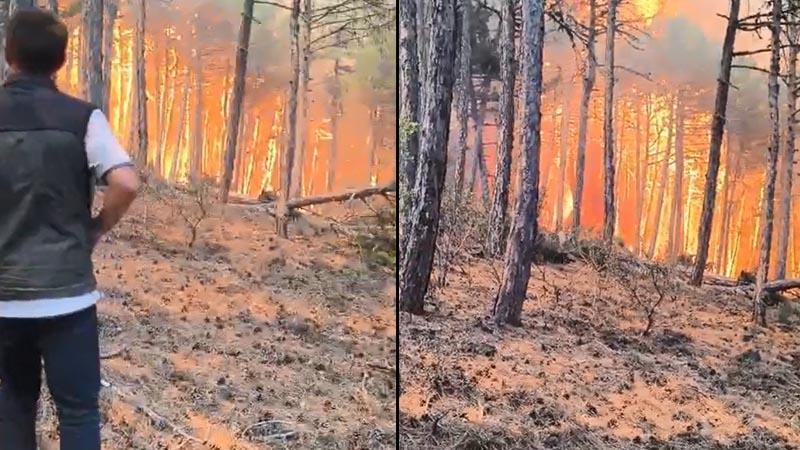 Şube müdürünün, alevlerin arasında kalan orman bölge müdürü ve ekibini kurtarma çabası kamerada