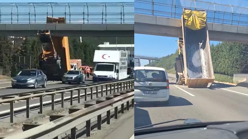 Sultanbeyli, TEM Otoyolu'nda seyir halindeki TIR'ın damperi, yaya üst geçidine çarptı. Kazada TIR'ın şoförü hafif yaralanırken, damper üst geçide takılı kaldı. Kaza nedeniyle TEM Otoyolu Edirne istikametinde trafik yoğunluğu oluştu.