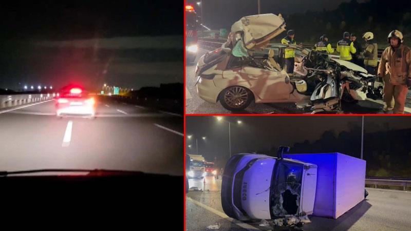 Sultanbeyli, Kuzey Marmara Otoyolu'nda makas atarak ilerleyen otomobil sürücüsü jandarmaya haber verildikten kısa süre sonra kamyonete çarparak kaza yaptı. Devrilen kamyonette bulunan 2 kişi ile otomobili kullanan ve alkollü olduğu tespit edilen sürücü yaralandı. Kaza öncesinde yolda şerit ihlali yaparak ilerleyen otomobil cep telefonu ile kaydedildi.