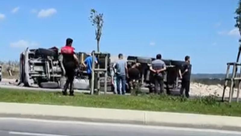Sultangazi'de hafriyat kamyonu devrildi: 1 yaralı