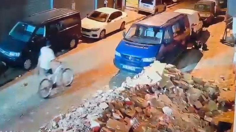 Sultangazi'de bisikletiyle sokakta yürüyen kiÅŸi, bina önündeki skuterin kilidini kırarak, çaldı. Hırsızlık şüphelisi bisikletini olay yerinde bırakarak, skuter ile sokaktan uzaklaÅŸtı. O anlar güvenlik kameralarına yansıdı.Â