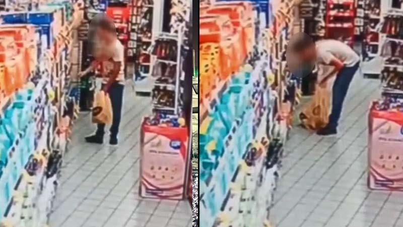 Hırsızlığı market çalışanları fark etti. Şüphelinin elindeki poşete ve aldığı ürünlere market görevlileri tarafından el konuldu. O anlar marketin güvenlik kamerasıyla cep telefonu kamerasına saniye saniye yansıdı.