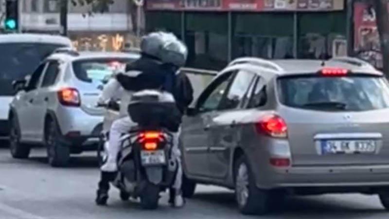 Sultangazi’de motosiklet sürücüsü aracın camına yumruk attı; aynasını kırdı