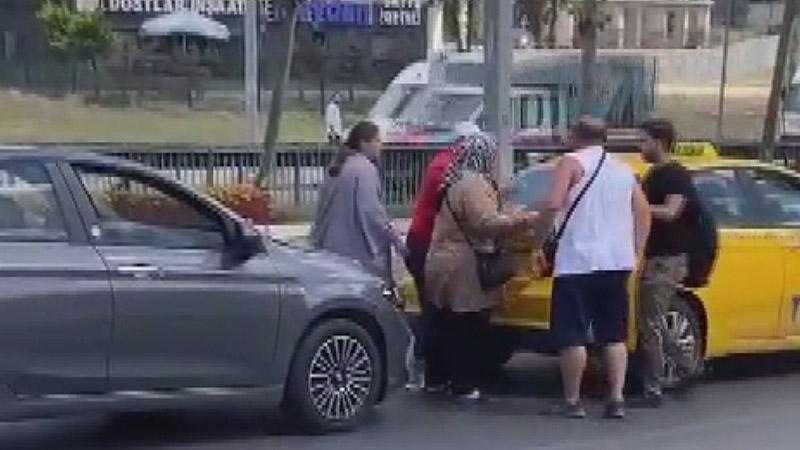 Sultangazi'de taksi şoförü tartıştığı yolcuları, yarı yolda indirdi. Bir süre yol ortasında devam eden tartışmayı çevredekiler cep telefonu kamerasıyla kaydetti.