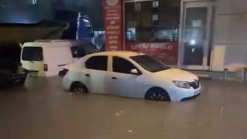 Sultangazi’de etkili olan yağışın ardından bazı yerlerde rögarlar taştı, caddede ilerlemeye çalışan araçlar su birikintileri nedeniyle yolda mahsur kaldı.