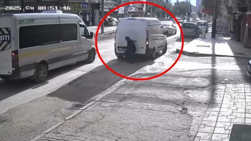 Bursa’da, sürücüsünün geri manevra yaptığı kapalı kasa minibüs, bu sırada arkasında yürüyen yayaya çarptı. O anlar bir iş yerinin güvenlik kamerasına yansıdı.