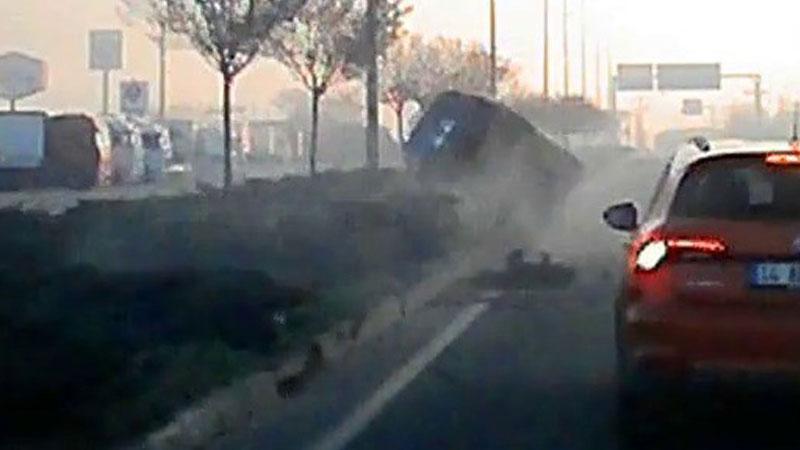 Kaza, saat 09.00 sıralarında D-100 kara yolunun Vakıfgeçitveren köyü mevkiinde meydana geldi. Kara yolunun Ankara yönünde M.C.Ç.’nin makas attığı plakası öğrenilemeyen otomobil, E.K. yönetimindeki 14 EK 181 plakalı otomobile çarptı. Kontrolden çıkan E.K.’nin otomobili refüje çarptıktan sonra devrilip metrelerce sürüklendi. İhbar üzerine kaza yerine polis ve sağlık ekibi sevk edildi. Kazada yaralanan sürücü E.K., sağlık ekipleri tarafından sevk edildiği hastanede tedavi altına alındı. Kaza, arkadan gelen bir otomobilin araç kamerasına yansıdı.
