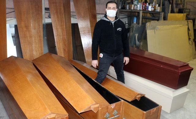 "Son aylarda içi galvaniz kaplı tabutların satışında yüzde 70 artış var. Antalya'nın tüm ilçelerine sızdırmaz tabut satıyoruz. Eskiden tek tabut birkaç defa kullanılıyordu. Bulaşıcı hastalıktan vefat edenler tabutla defnedildiği için artık defin işlemi galvaniz kaplı tek kullanımlık tabutlarla yapılıyor."