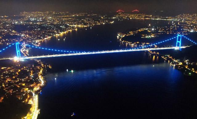 FATİH SULTAN MEHMET KÖPRÜSÜ MAVİ RENK İLE IŞIKLANDIRILDI
