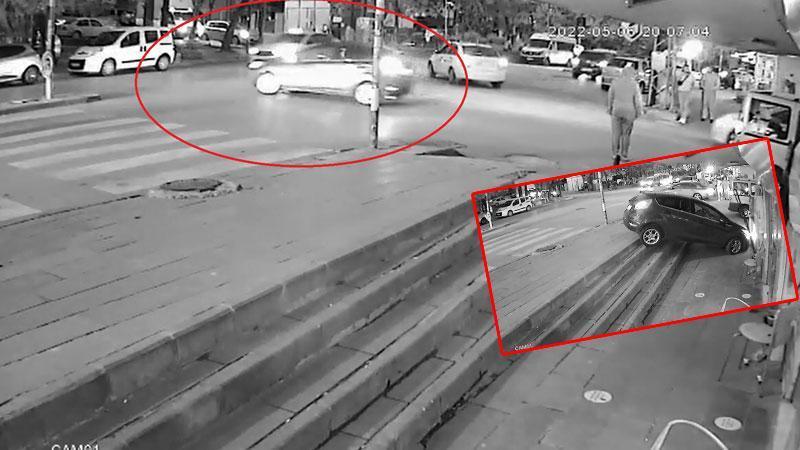 Taksi ile otomobilin çarpıştığı kaza kamerada