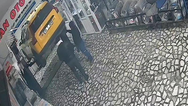 Bu sırada aracın etrafında bulunan oto tamircisi ile 2 kişi, son anda kurtuldu. Düşmenin etkisiyle takside zarar meydana geldi. O anlar, iş yerinin güvenlik kamerasına yansıdı.