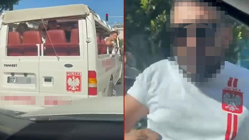 Antalya'nın Alanya ilçesinde safari aracının sürücüsü, trafikte tartıştığı Ukraynalı sürücünün önünü kesip, aracının camını yumrukladı. Olay anı cep telefonu kamerasına yansıdı.