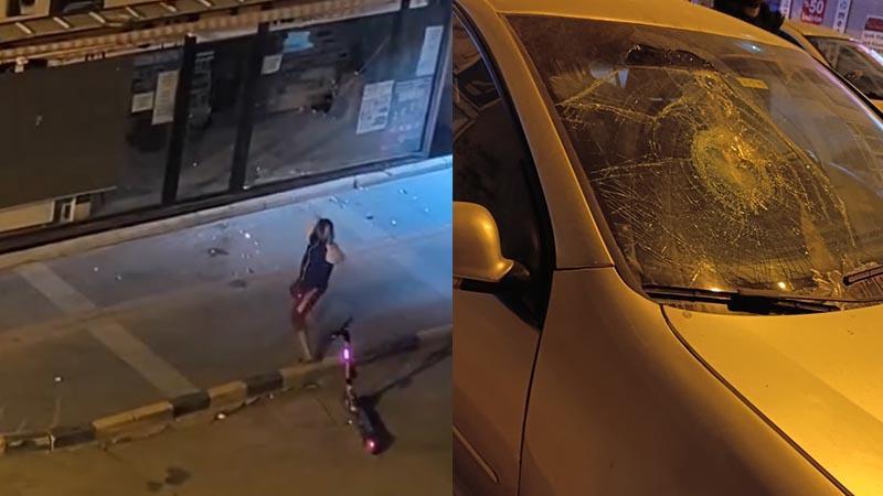 Taşla park halindeki otomobiller ile iş yerlerinin camlarını kırdı