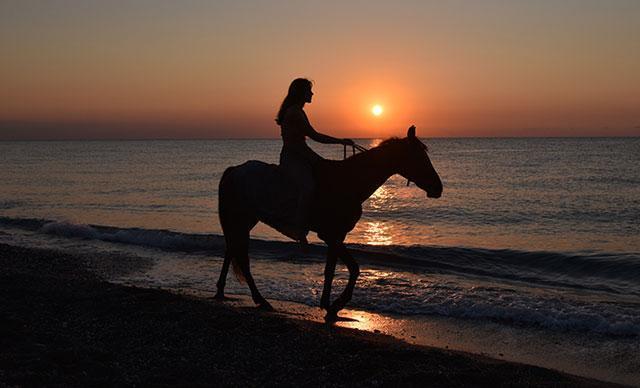 Tatilcilerin favorisi gün doğumunda at turu