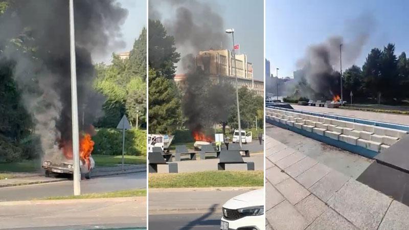 TBMM önünde otomobilini yaktı, gözaltına alındı