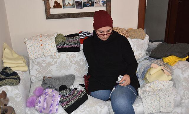 Tek eliyle yaptığı örgülerle kendisi gibi depremzedelere umut oluyor