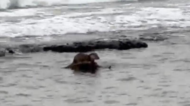 Marmara Denizi’nin Tekirdağ kıyılarında su samuru görüntülendi. Bir süre su üzerinde yakaladığı balığı yemeye çalışan su samuru, sahilde gezenler tarafından cep telefonuyla kayda alındı. Samur, kısa süre sonra suda gözden kayboldu.