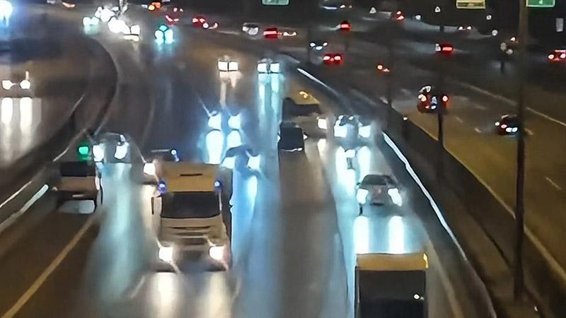 Sultangazi'de TEM Otoyolu'nda meydana gelen kaza sonrası sürücülerin araçlarını yolun ortasında güvenlik önlemi almadan bırakması trafikte tehlikeli anlara neden oldu. Hızla ilerleyen sürücüler, araçları son anda fark edip manevra yaparak kazadan kıl payı kurtuldu.
