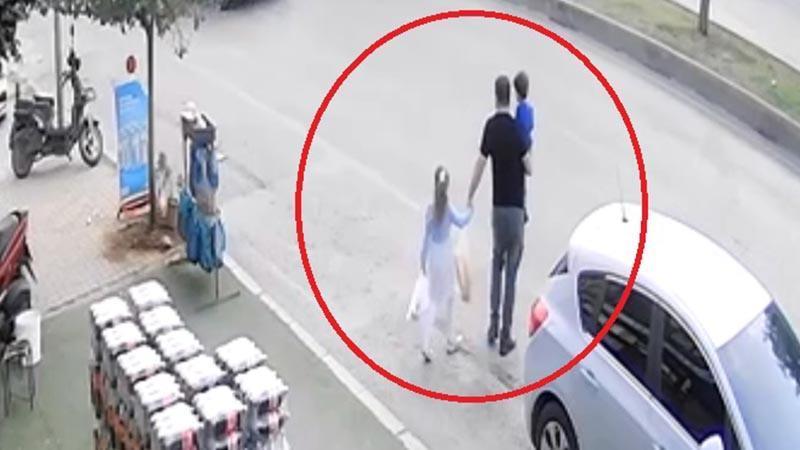 Görüntülerde, kucağındaki oğlu ve elinden tuttuğu kızıyla karşıya geçmeye çalışan babaya, ters yönde ilerleyen forklifin çarptığı ve çevredekilerin yardıma koştuğu anlar yer alıyor. Kazayla ilişkin soruşturma başlatıldı.