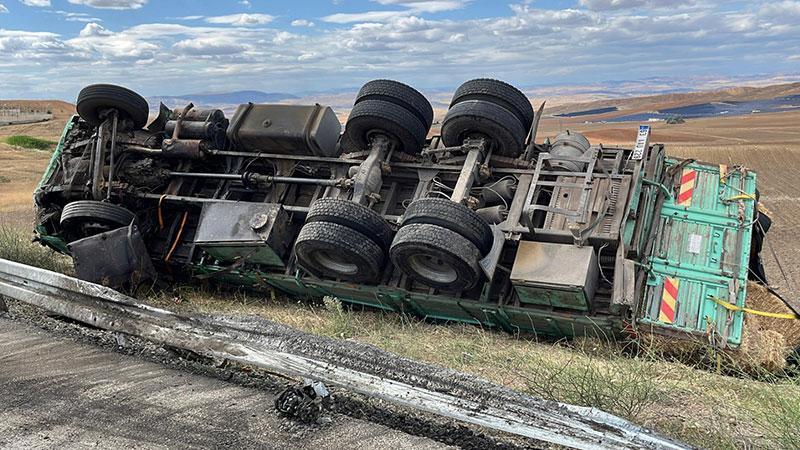 Kamyonda bulunan 2 kişi ise sağlık görevlilerince yapılan ilk müdahalenin ardından hastaneye kaldırıldı.