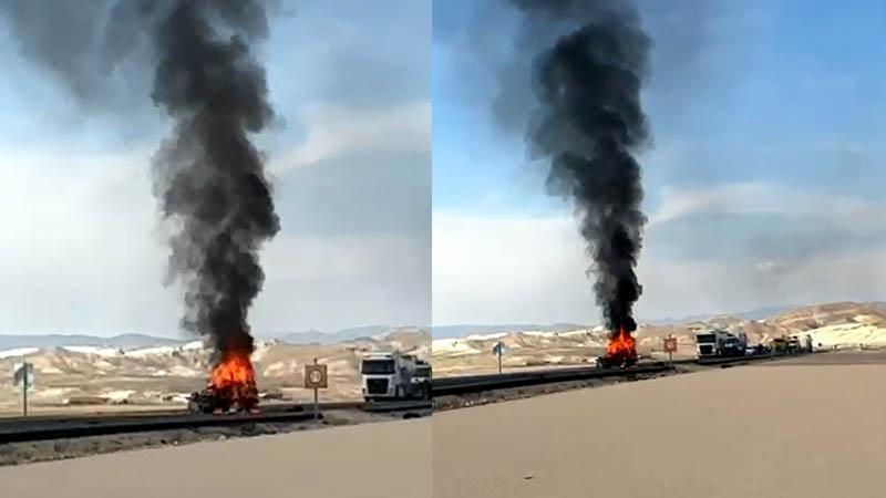 TIR ile çarpışıp alev alan otomobilin sürücüsü öldü